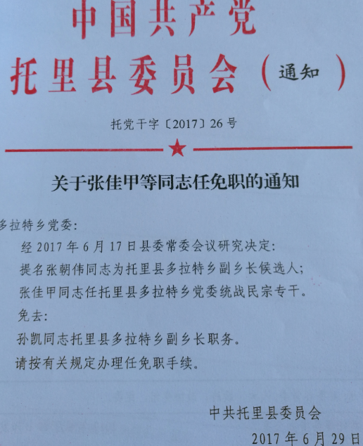 关于张佳甲等同志任免职的通知