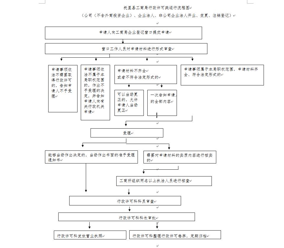 托里县工商局行政许可类运行流程图